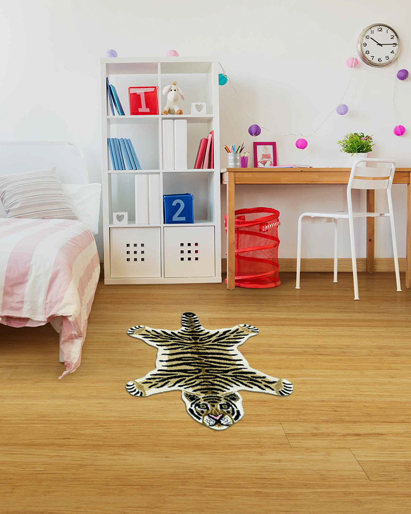 Tiger Skin Shaped 2ft x 3ft Hand Tufted Pure Wool Rug For Kids Room